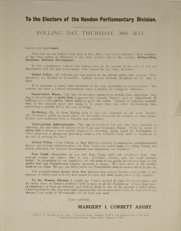 Margery Corbett Ashby (L), Hendon 1929: