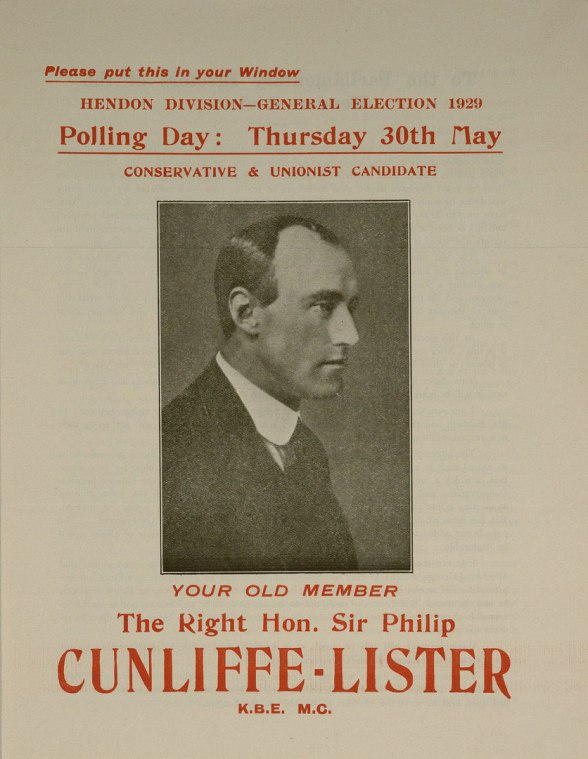 Philip Cunliffe-Lister (C), Hendon 1929: