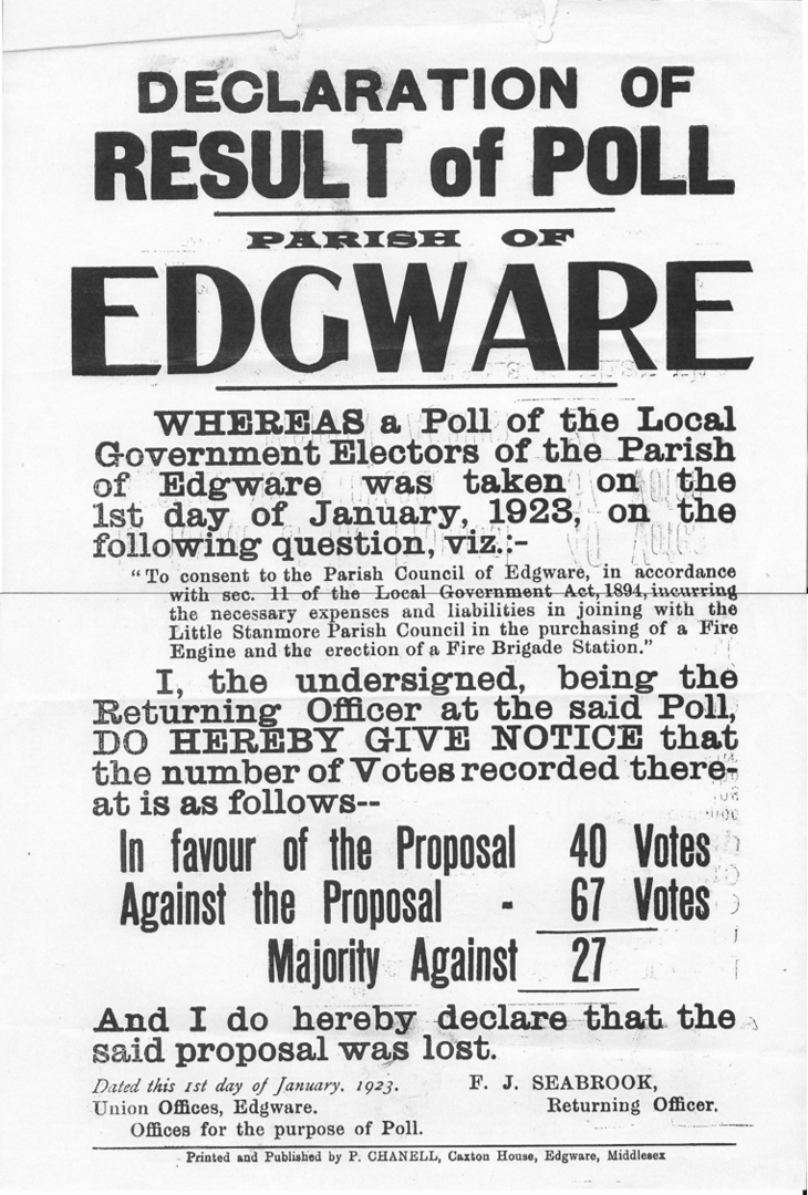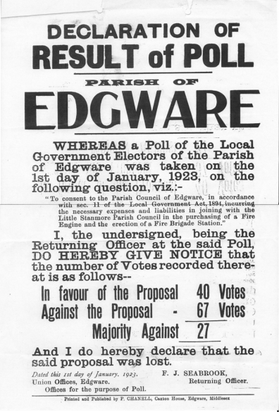 Edgware Parish Poll, 1923