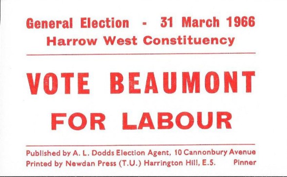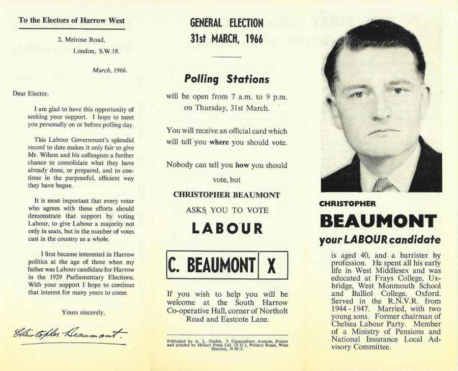 Christopher Beaumont (Lab), Harrow West 1966: