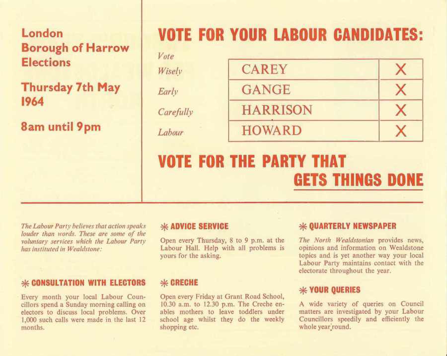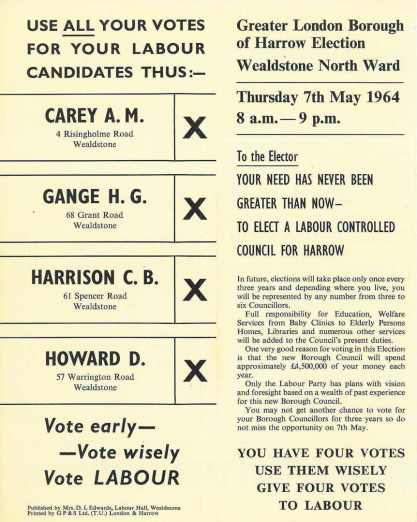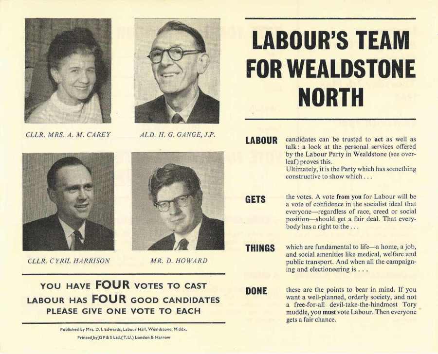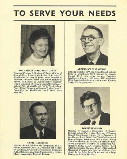 Millie Carey / George Gange / Cyril Harrison / Derek Howard (Lab), Wealdstone North 1964: