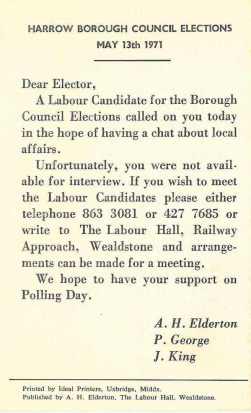 Alf Elderton / Patrick George / John King (Lab), Wealdstone South 1971: