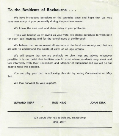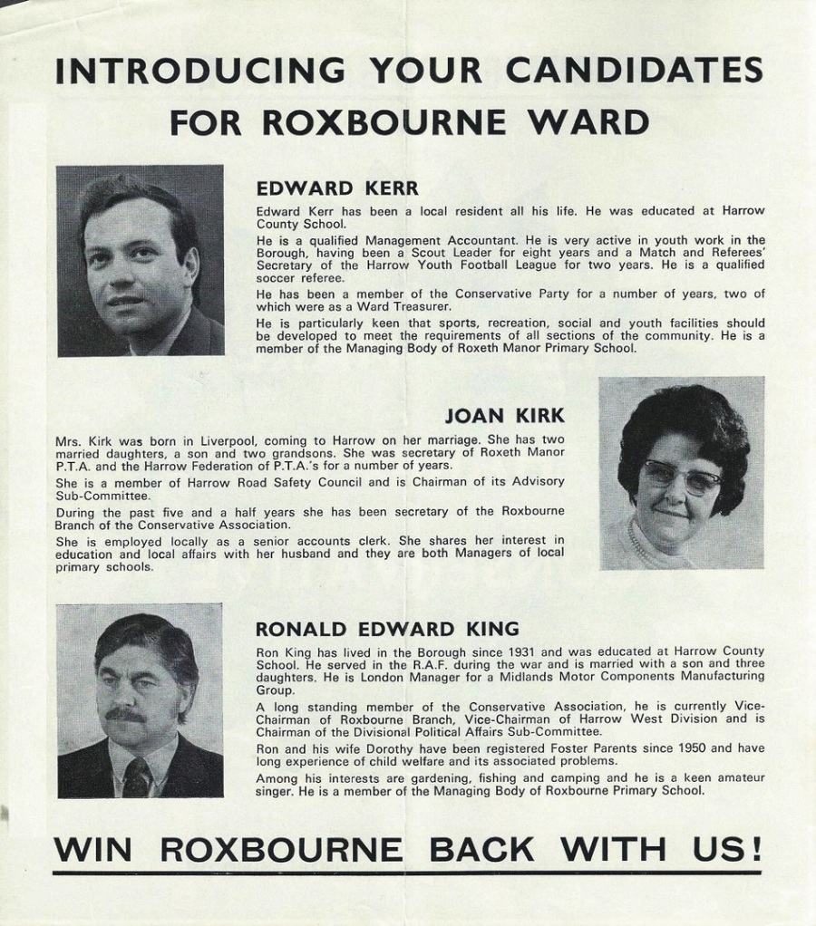 Edward Kerr / Ron King / Joan Kirk (C), Roxbourne 1974: