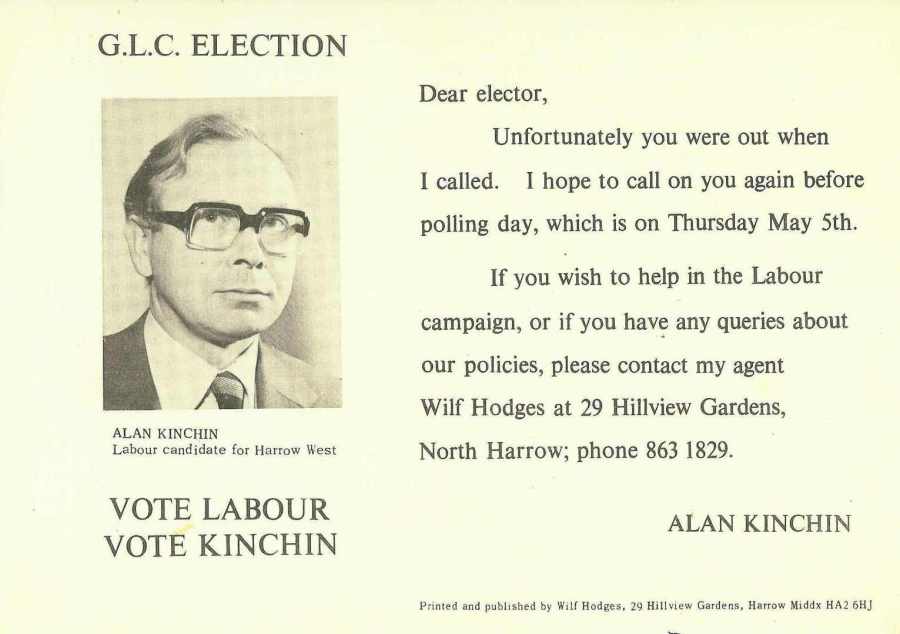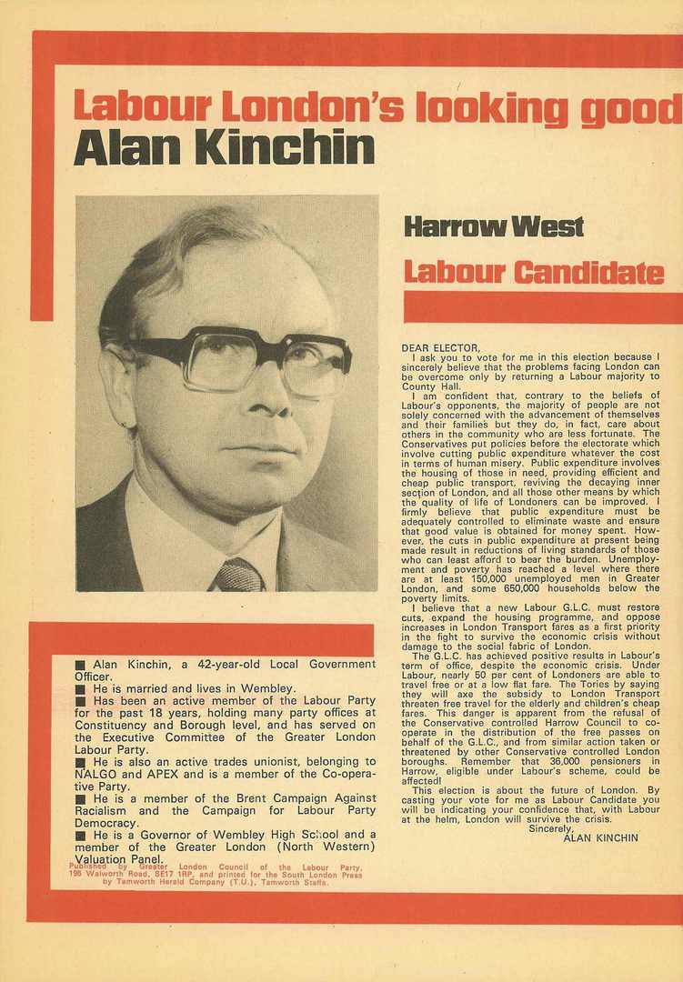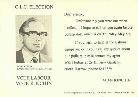 Alan Kinchin (Lab), Harrow West 1977: