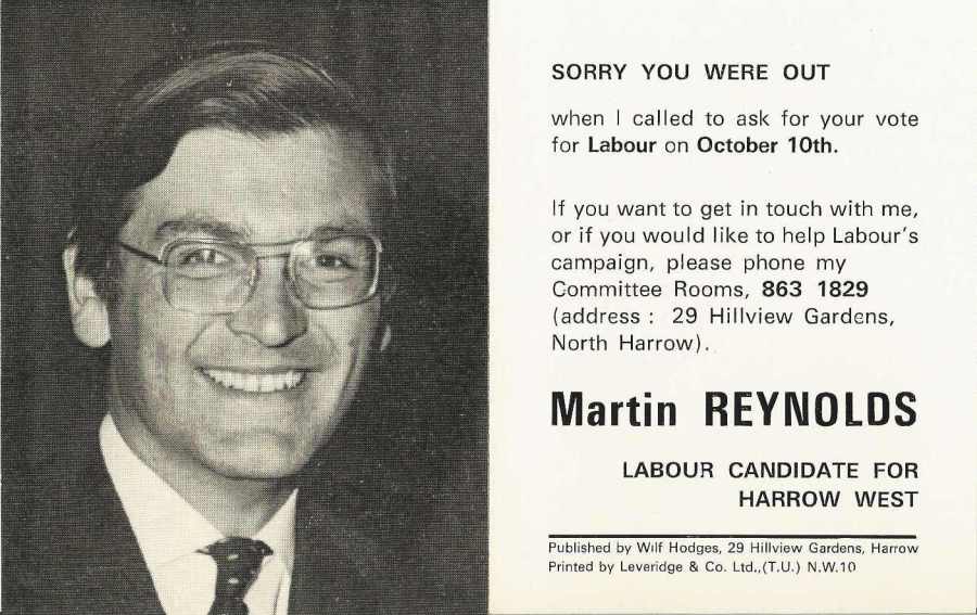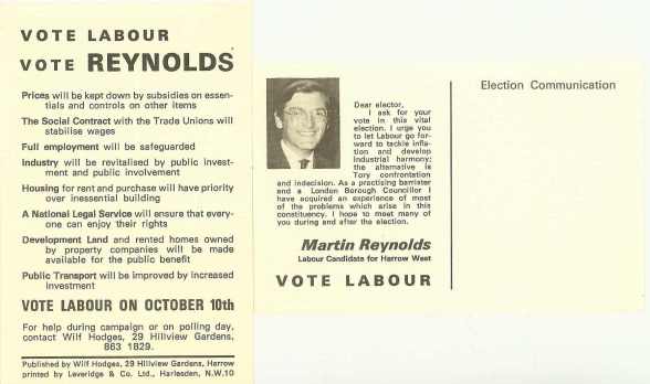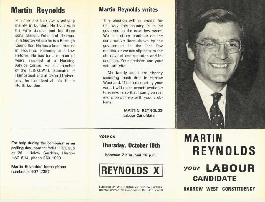 Martin Reynolds (Lab), Harrow West 1974 (O):