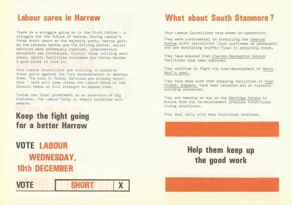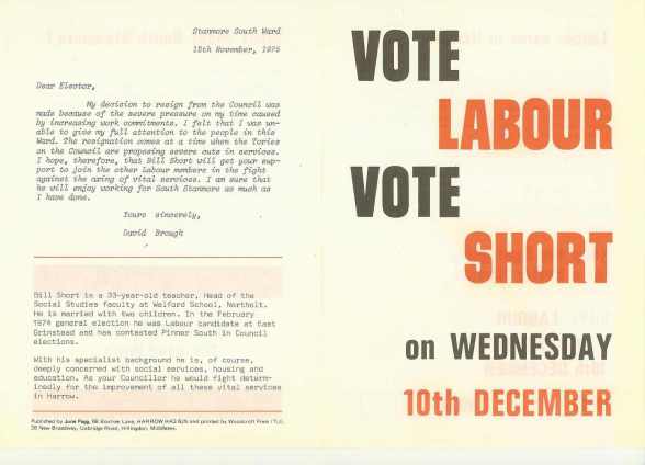 Bill Short (Lab), Stanmore South 1975 by-election: