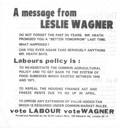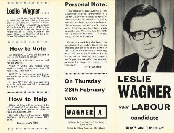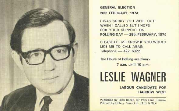 Leslie Wagner (Lab), Harrow West 1974 (F):