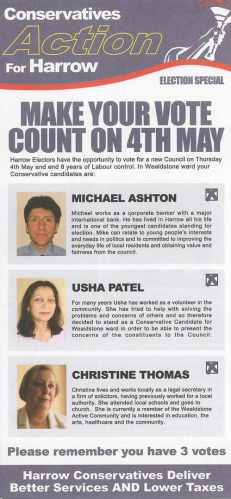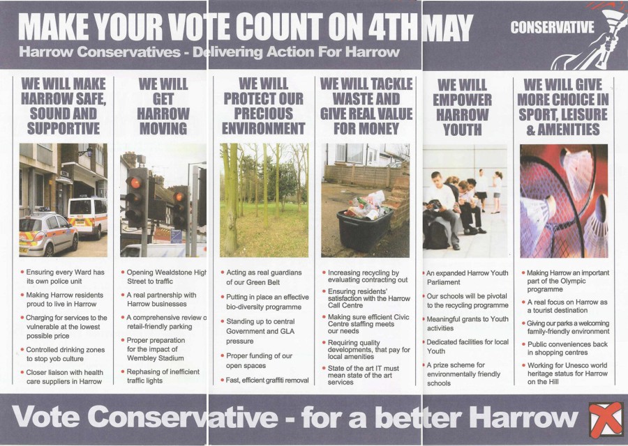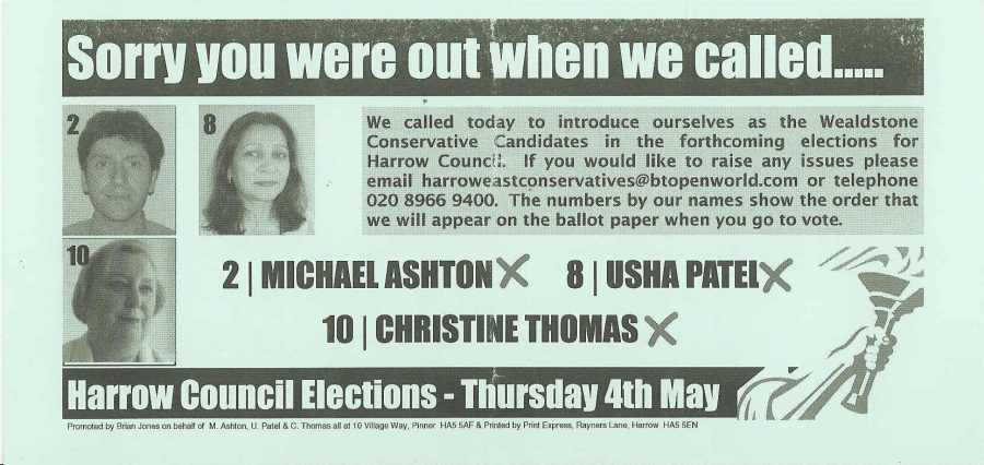 'Outisde panel 1' was the only part of the address specific to Wealdstone ward; the other parts were 'generic', and could be used for election addresses in other wards. (The second image was a merger of three separate scans.)