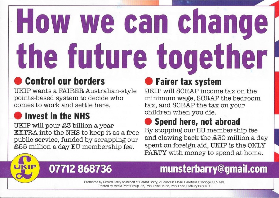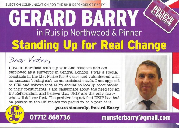 Gerard Barry (UKIP), Ruislip, Northwood and Pinner 2015: