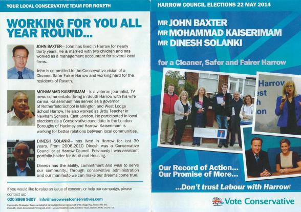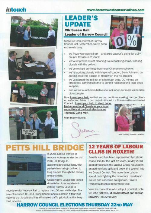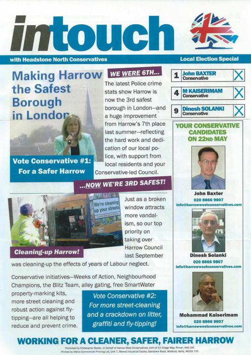 The first image shows the front and back pages. In other respects the leaflet was identical to that used by the Conservative candidates for Greenhill ward, except for appropriate changes to the candidate names.