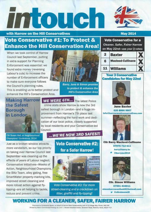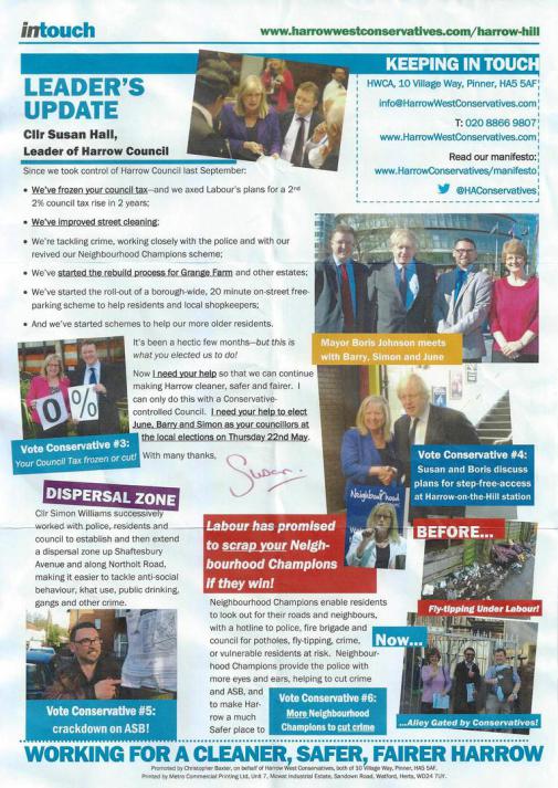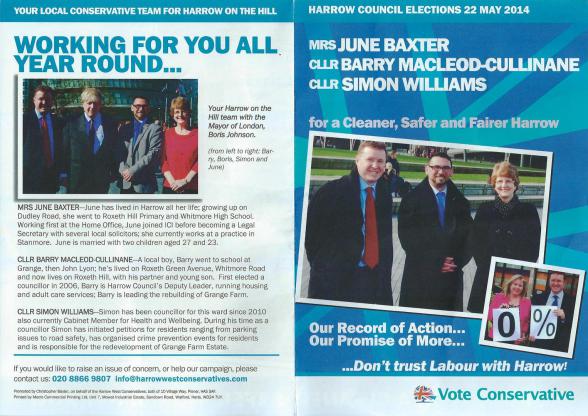 The first image shows the front and back pages. In other respects the leaflet was identical to that used by the Conservative candidates for Greenhill ward, except for appropriate changes to the candidate names.