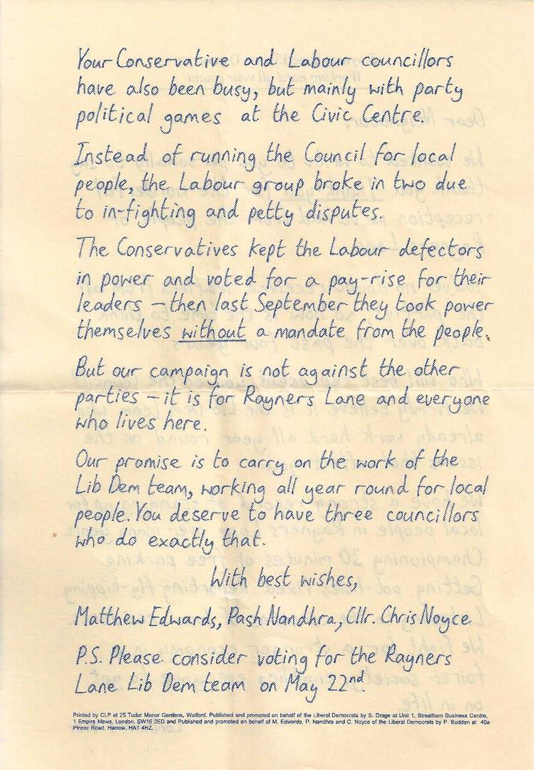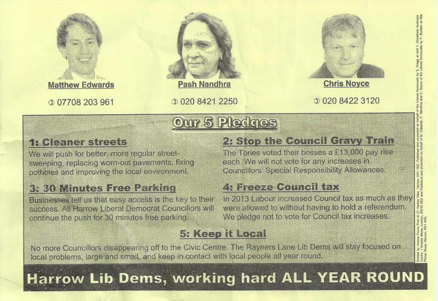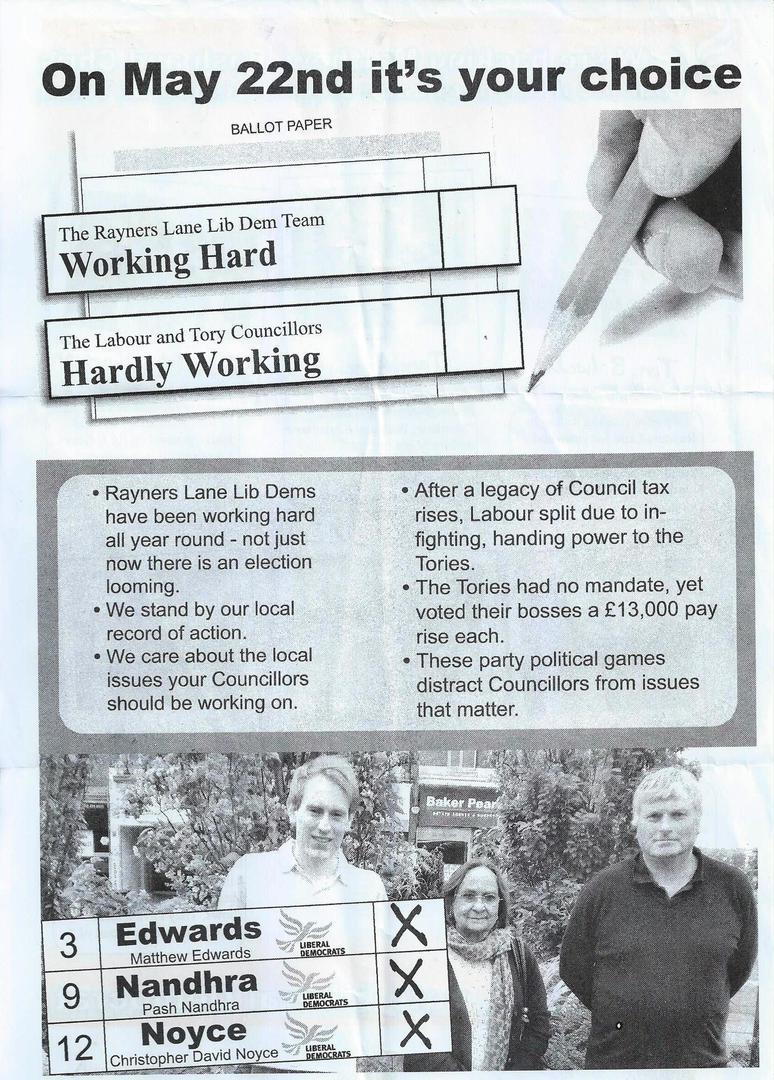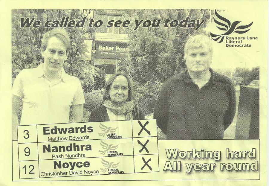 Matthew Edwards / Pash Nandhra / Chris Noyce (LDem), Rayners Lane 2014: