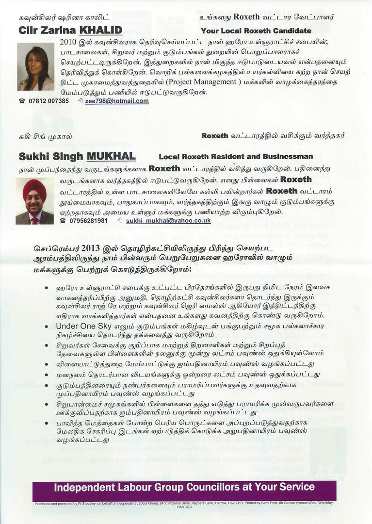 Thaya Idaikkadar / Zarina Khalid / Sukhi Mukhal (ILG), Roxeth 2014: