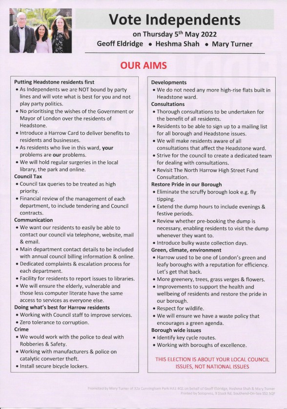 "Our Aims" leaflet