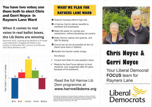 Chris Noyce / Gerri Noyce (LDem), Rayners Lane 2022: